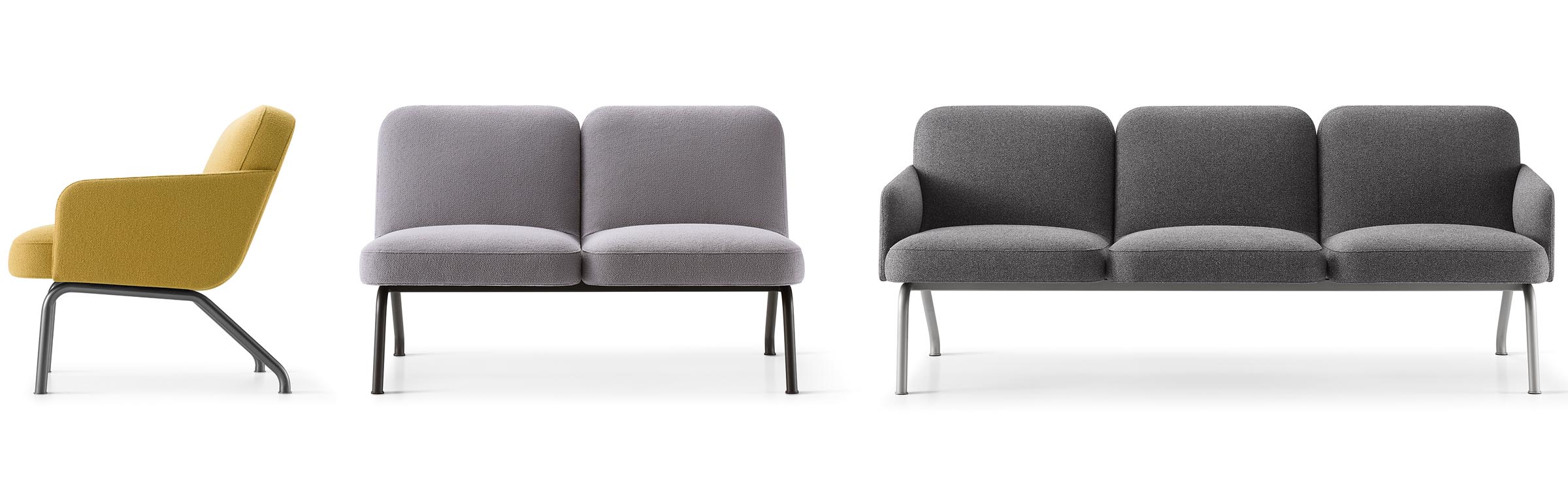 The tubular steel metal legs gracefully cascade at the back of the lounge for a visual and practical appeal. By incorporating the slight angle in the upholstered seat with the soft incline of the metal frame, Nordic was designed to create maximum support for the user while at work or at rest.