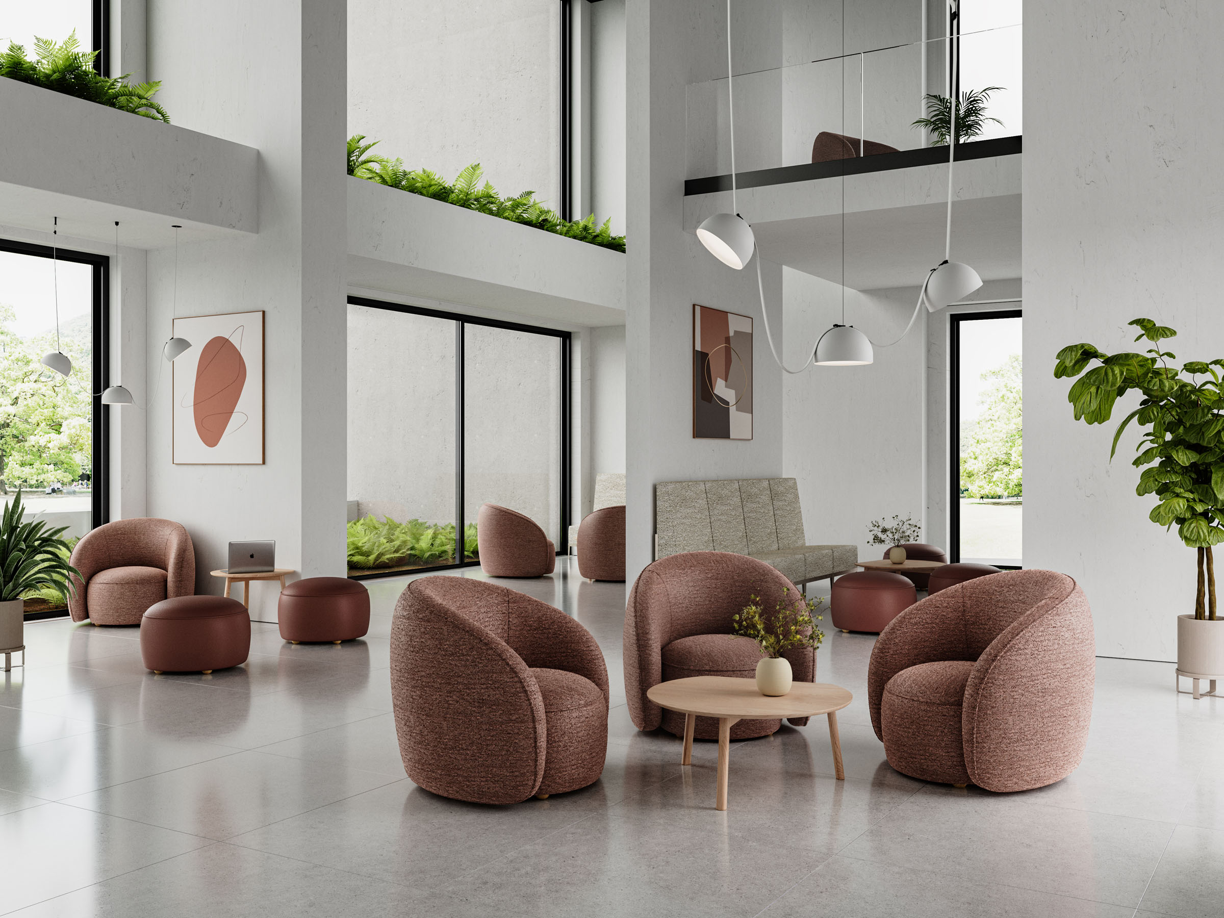 Charm is a sculptural lounge and ottoman set born from a simple yet powerful vision: create a compact seat that feels like a warm, welcoming hug. Designed by Gemma Bernal, Charm eliminates hard edges, offering soft, curved surfaces that are gentle to the touch and calming to the eye. The lounge’s distinct pouf-inspired seat and continuous backrest flow into one another seamlessly, crafting a silhouette that is both bold and beautifully approachable.