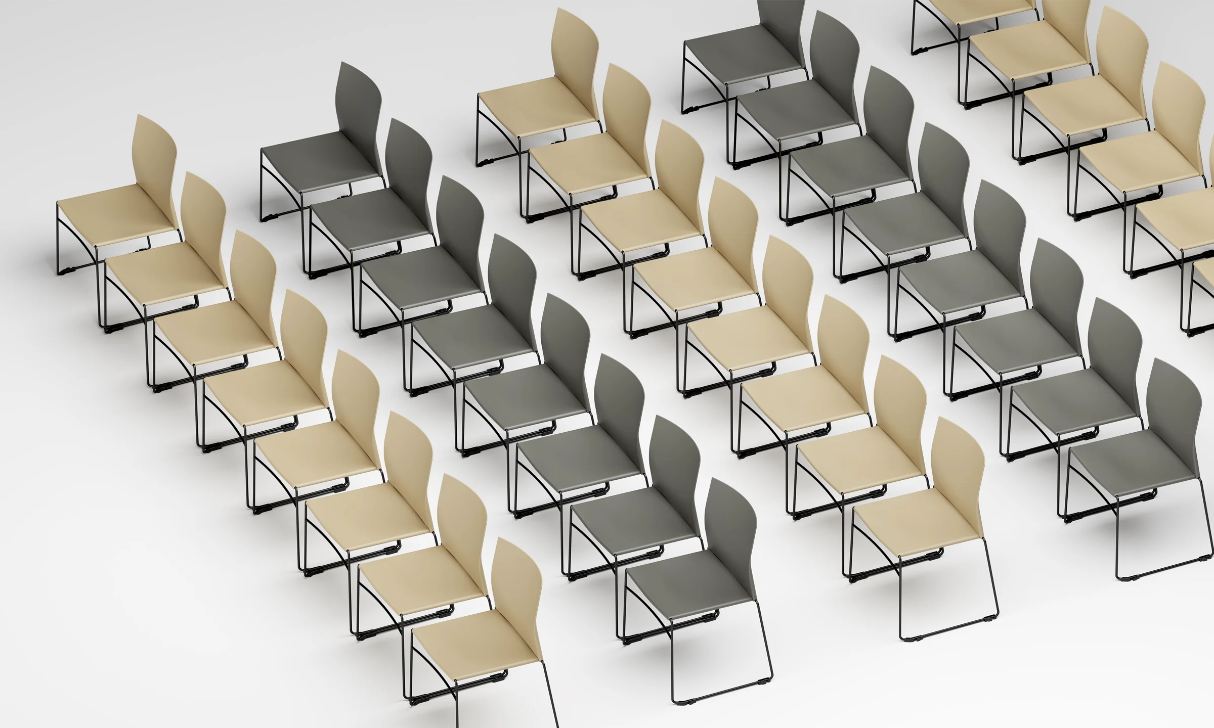 Designed with practicality in mind, Tier chairs stack up to 10 high on the floor and 45 high on a dolly, optimizing storage space. This feature makes them ideal for multipurpose areas where flexibility and quick reconfiguration are essential.
