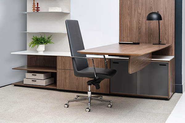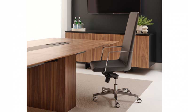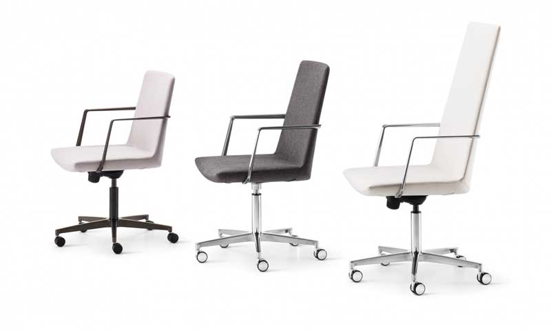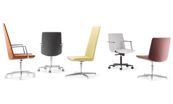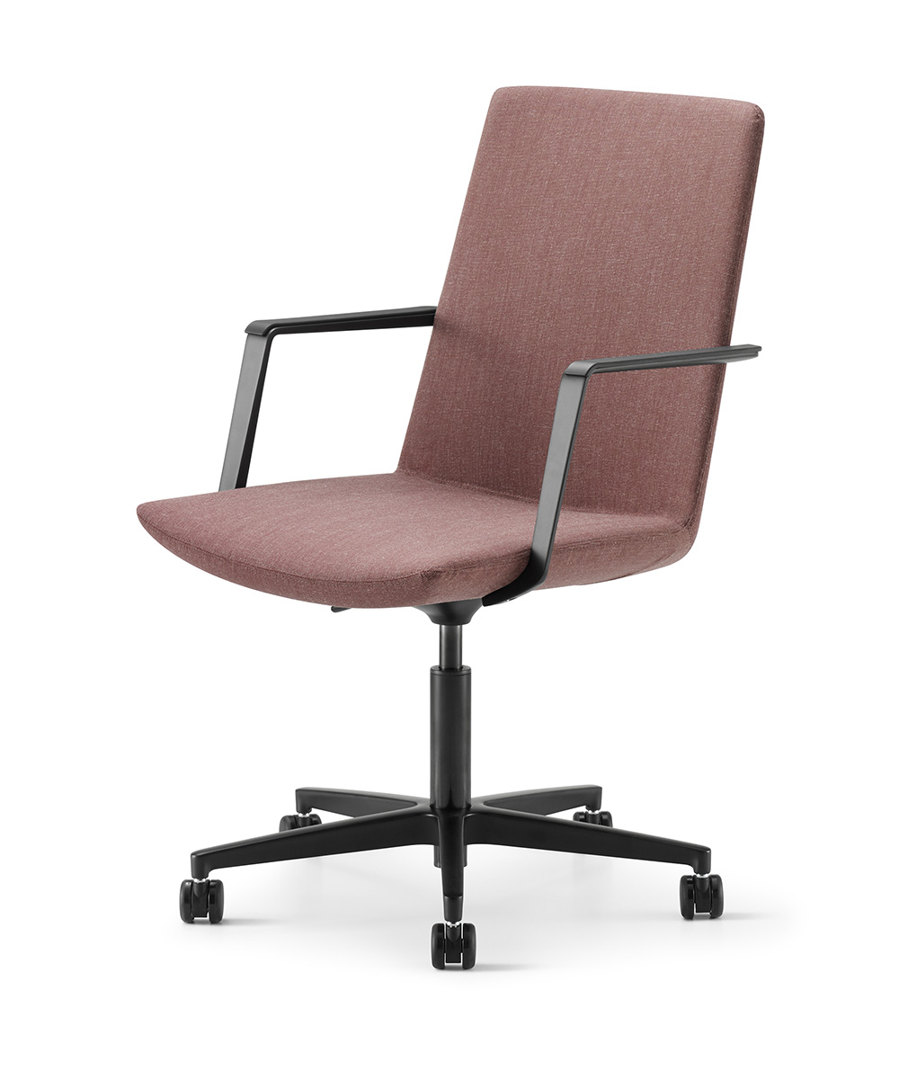 Defign Swivel blends mid-century cues with soft, curved edges in a mobile format, bringing sophistication and flexibility to workspaces or lounges.