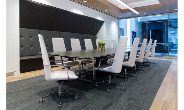 Defign also offers flexibility in aesthetic customization and configuration. Seating options include swivel, lounge, and glide base variants, with finishes in dark bronze, black matte, or polished aluminum. Arms can be specified or omitted based on preference, and poly-resin arm caps are available in black or grey to complement a variety of palettes and project needs.