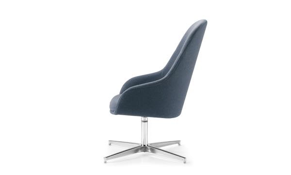 The Martini Lounge and Martini Plus Swivel expand the collection with larger-scale options designed for enhanced comfort and visual presence. The Martini Lounge features molded foam cushioning and comes in three base styles: four-star swivel, tubular sled, and solid wood. A matching footrest completes the four-star configuration. For a more ergonomic yet generous scale, the Martini Plus Swivel integrates the original sculpted seat with added padding and a five-star base. This diversity across the line makes Martini a refined choice for environments that span work and hospitality, conversation and concentration.