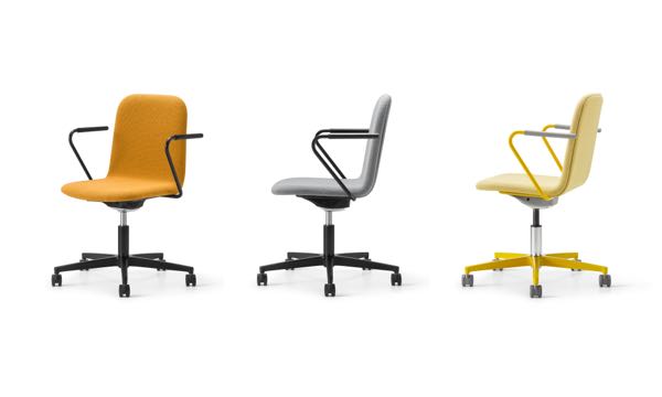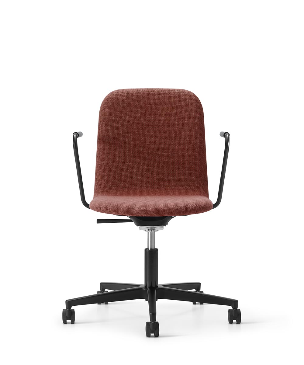 The Mojo Swivel Chair combines minimalist design with ergonomic functionality. Featuring a fully upholstered shell, height-adjustable swivel base with optional tilt, and available with casters or glides, Mojo Swivel offers versatile seating solutions for modern workspaces. Choose from polished aluminum or 16 powder coat finishes to complement any interior.